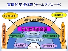 一人ひとりの学生を、その学生のニーズに合わせた様々な視点から見守る体制、それが、本学部の「重層的教育支援」であると言えます。