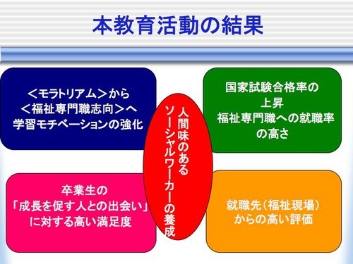 社会福祉学部教育の成果としては上記の4つがあげられます。