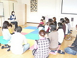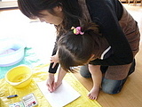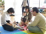 子育て支援グループ「ほんわかクラブ」が今年度のお別れ会をひらきました。大学生のお兄さん/お姉さんによる「絵本の読み聞かせ」や、こどもたちの手形・足形をスタンプした「メモリアルカードづくり」をして、皆で楽しみました。13組の親子の参加がありました。
