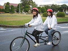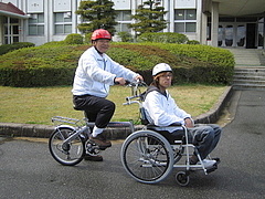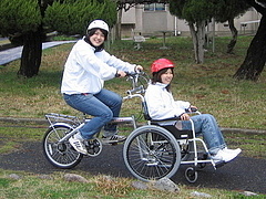 4月からの本格始動にむけて、タンデム(二人のり自転車)トライデム(二人のり三輪車)の試乗会をしました。タンデムの前に乗る人を<パイロット>、後ろに乗る人を<ストーカー>と呼びます。息を合わせて風をきるのは、本当に気持ちのよいものです。<ストーカー>には視覚障がい者も乗ることができますし、車いすバージョンもあります。ユニバーサル・スポーツの一つです。今後は、地域の人々とのサイクリング企画を立てていきたいと思います。