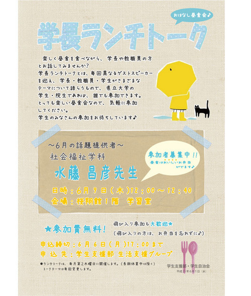 楽しく昼食を食べながら、学長や教職員の方とお話してみませんか?