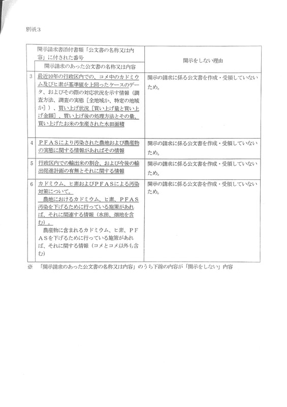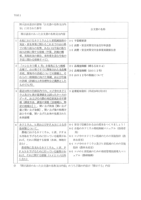 #山口県 ) #カドミウム と#pfas についての #情報公開 請求の結果