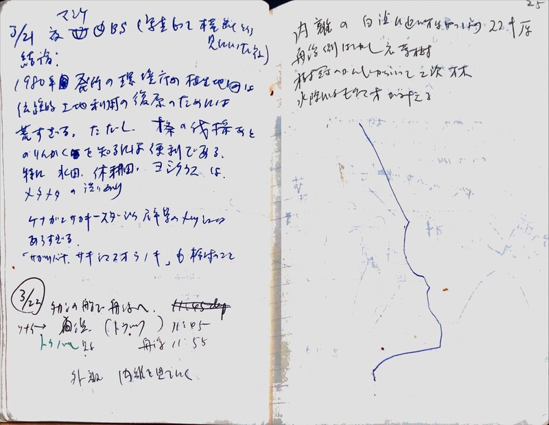 明治半ばに西表島を訪れた博物学者の田代安定のフィールドノートをいま勉強していますが、植物リストや景観スケッチなど、100年以上の時を隔てて、フィールドノートが非常に似ているのが、面白いですね。