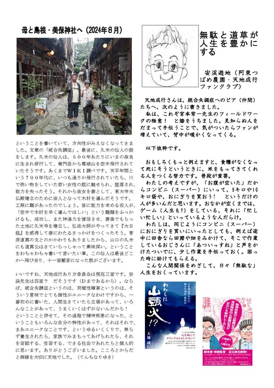 みんつど)統合失調症の家族会のみなさんへの天地成行さんのメッセージ