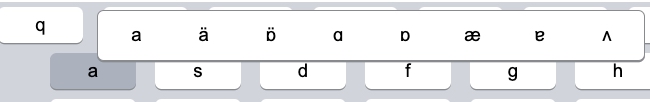 改良版が作られています。非常にスッキリして、キーボードだけなので、始めは戸惑いますが、アルファベットの例えば a を押してみると、3番目の図に示したように、aに似ていたり、日本人には [a] の仲間のように聞こえるかもしれない音の記号がずらり並んで、そこから簡単に選べるようになっています。(アンドロイドスマホで日本語を入力するときに、「あ」を押すとあ行の文字が出て選べる感じ)