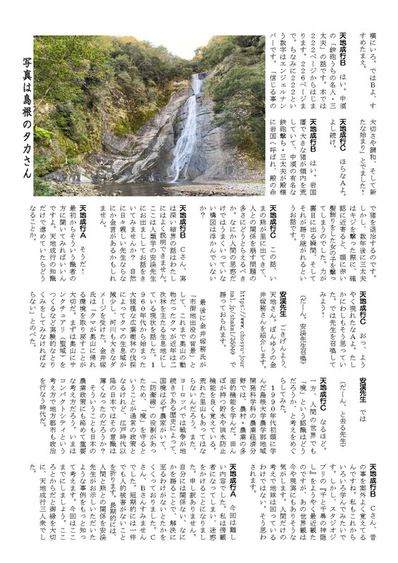 賢治さんに なめとこ山の熊 という印象的な作品があります。天地成行さん3人衆の脳内会話が届きました。