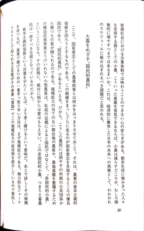 なぜ、小農が滅びないのか、ということを、私たちが稲作農民になる道を開いてくださった津野幸人さんの名著の冒頭から画像で引用します。エッセンスは以下にあります。