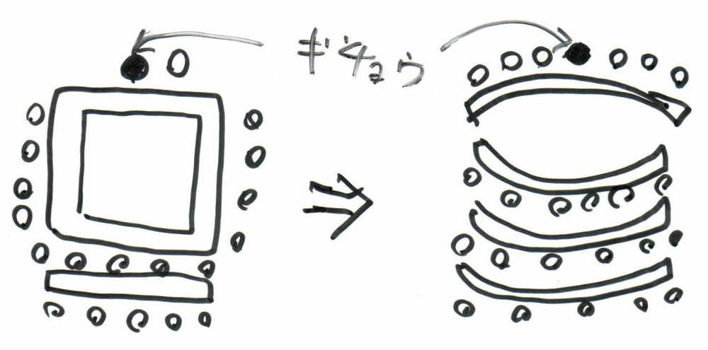 列机を並べてすわります。元旦の 旦 字の 日を 口にしたようなぐあいといった